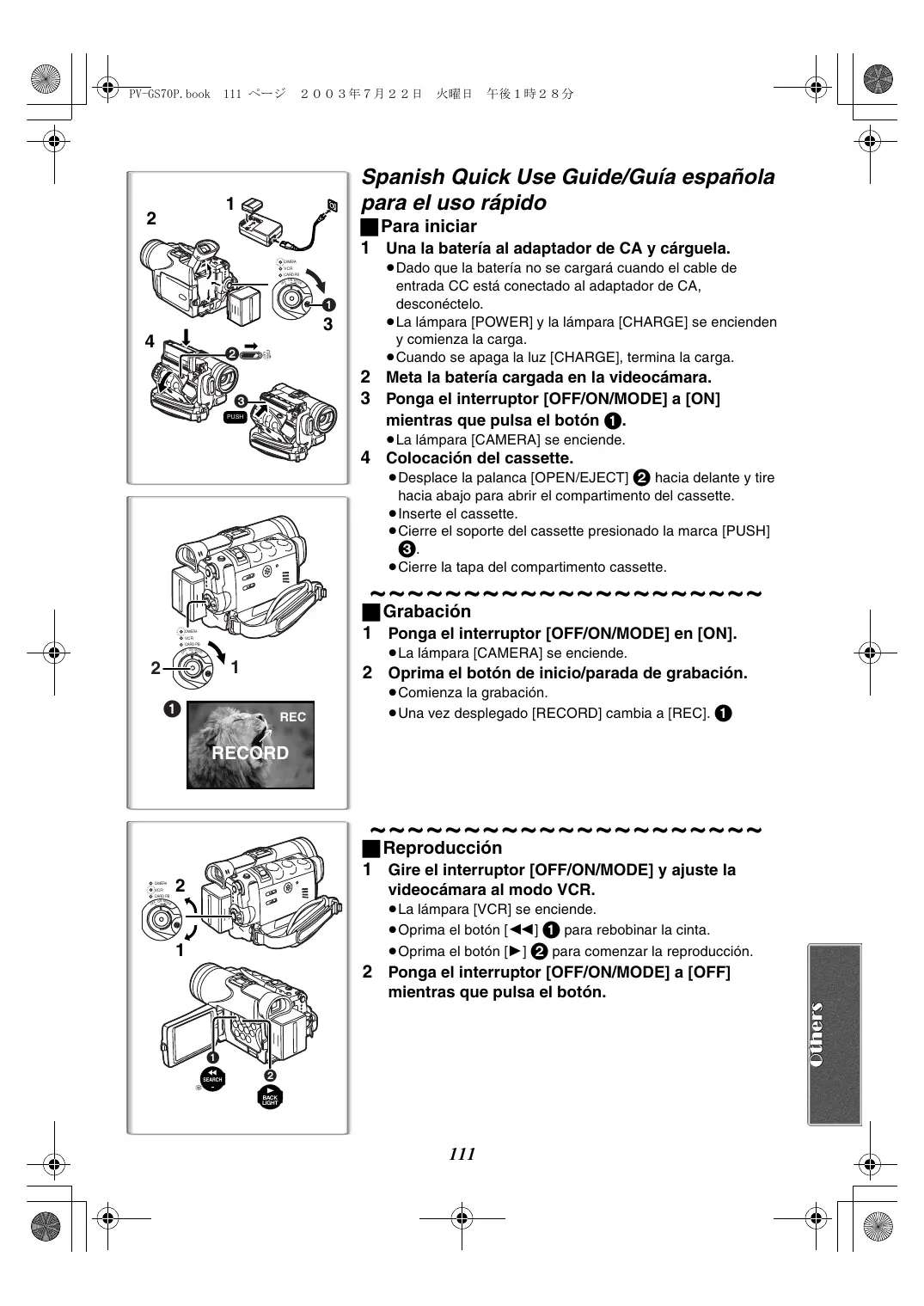 Descarga las instrucciones para tu Videocámara en formato PDF gratis! Encuentra tus instrucciones PVGS70 - PANASONIC y toma tu dispositivo electrónico nuevamente en la mano. En esta página están publicados todos los documentos necesarios para el uso de su dispositivo. PVGS70 de la marca PANASONIC.