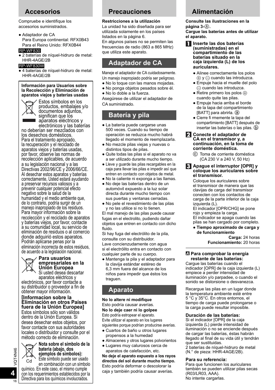 - 4 baterías de niquel-hidruro de metal: HHR-4AGE/2B