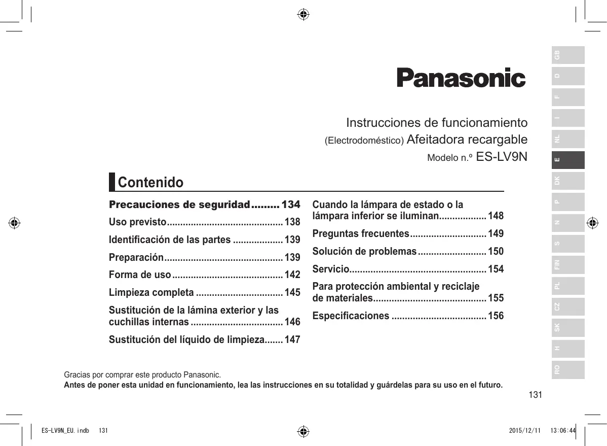 Encuentra gratis el manual del aparato ES-LV9N PANASONIC en formato PDF.