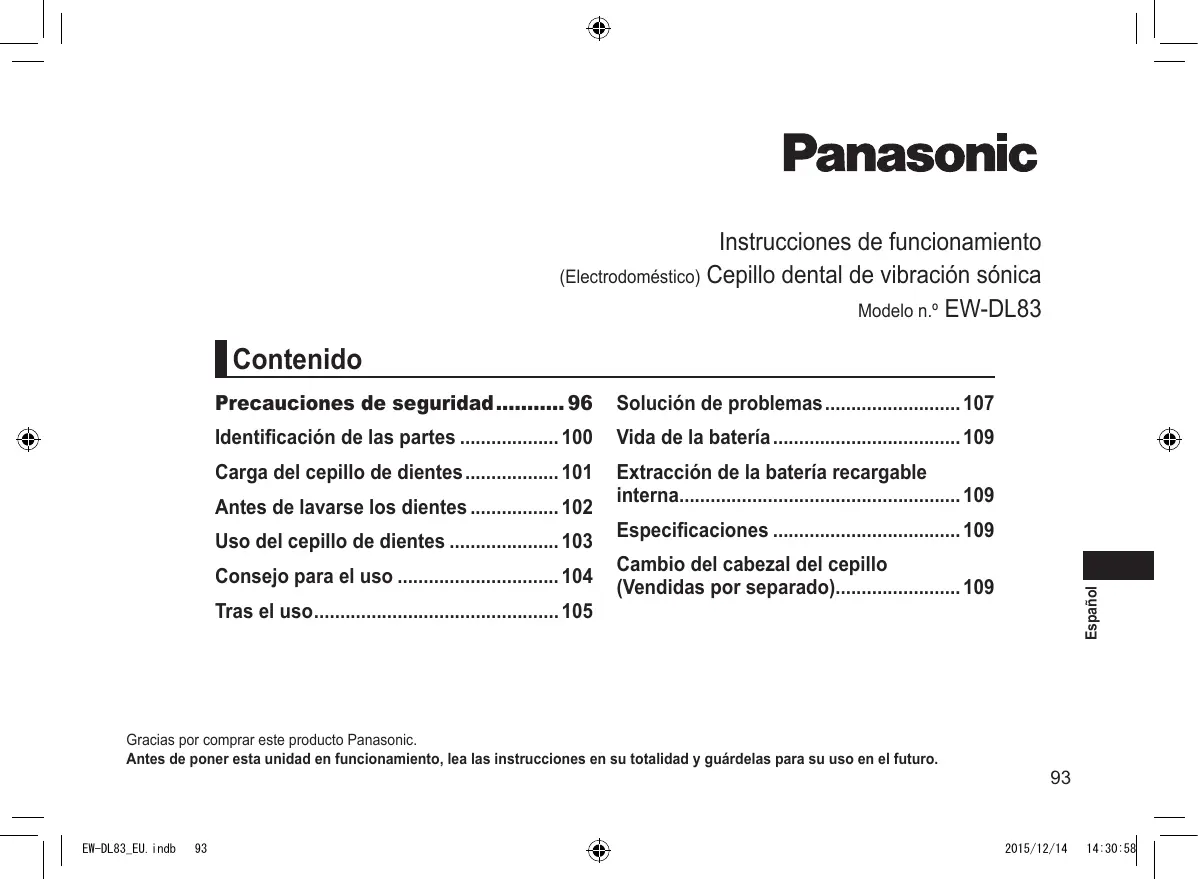 EW-DL83 - Cepillo de dientes electrico PANASONIC - Manual de uso y guía de instrucciones gratis