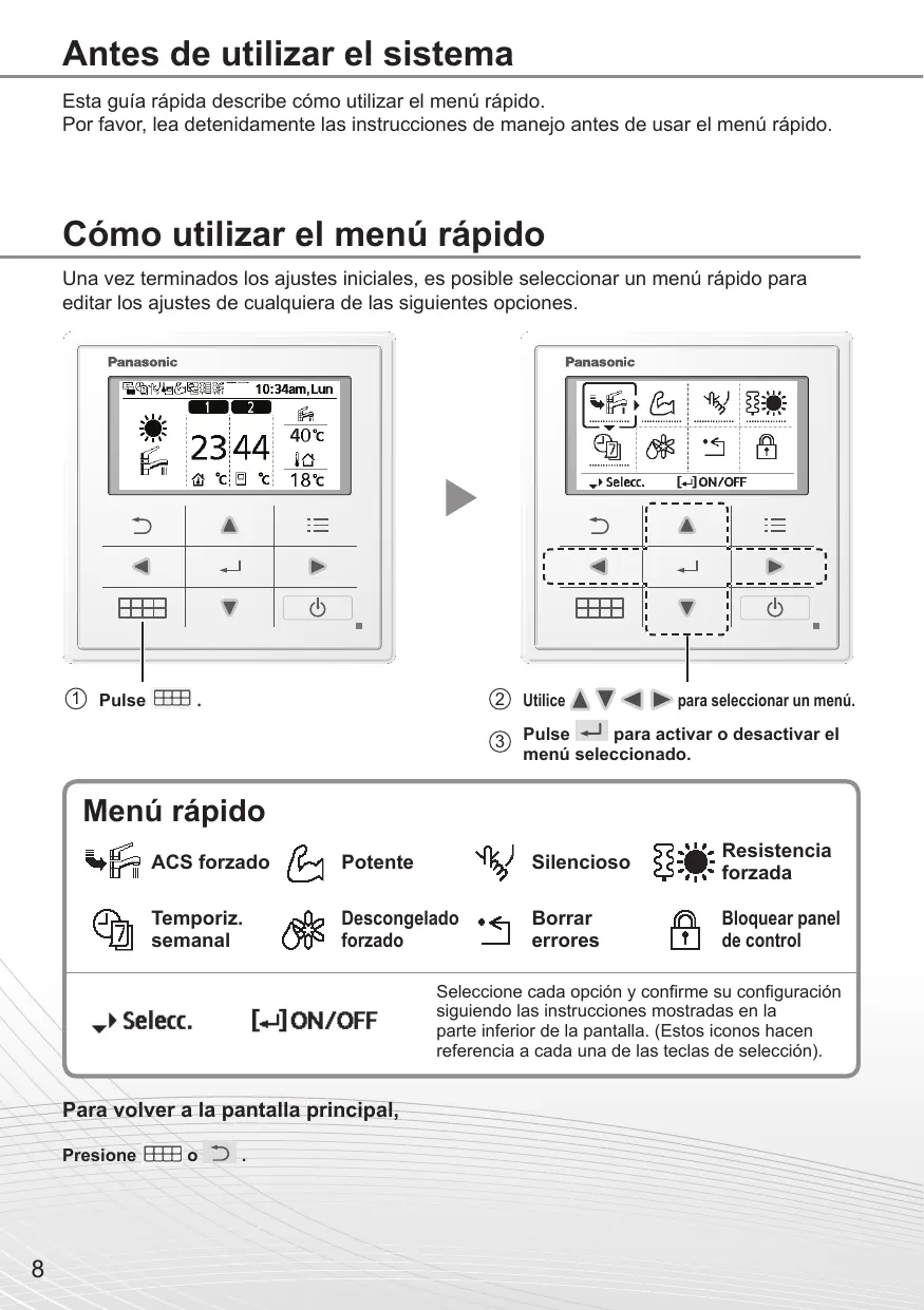 Esta guía rápida describe cómo utilizar el menú rápido. Por favor, lea detenidamente las instrucciones de manejo antes de usar el menú rápido.