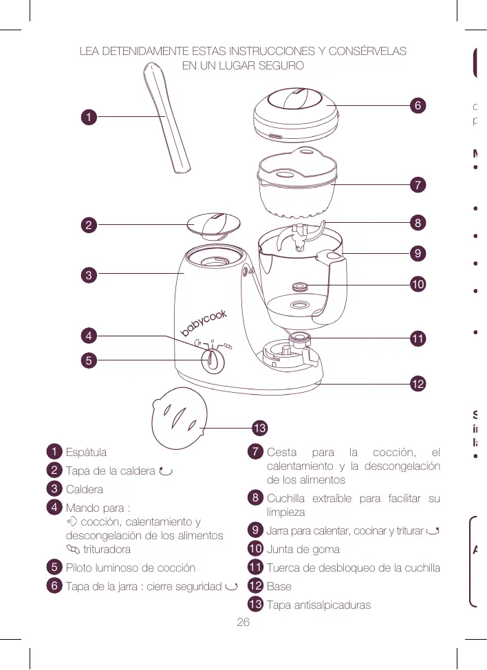 BABYCOOK - MULTICO - Procesador de alimentos para bebes BEABA - Manual de uso y guía de instrucciones gratis