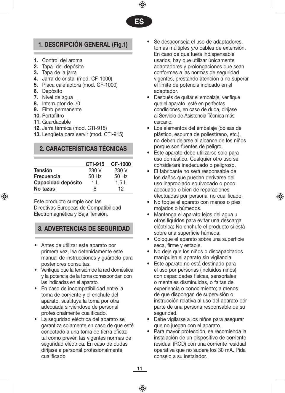 modelo CF-1000 la plac calefactora (5)技术支持é el café caliente. En el modelo CTI-915, la jarra térmica (12)技术支持é el café caliente awhile apague la cafetera.