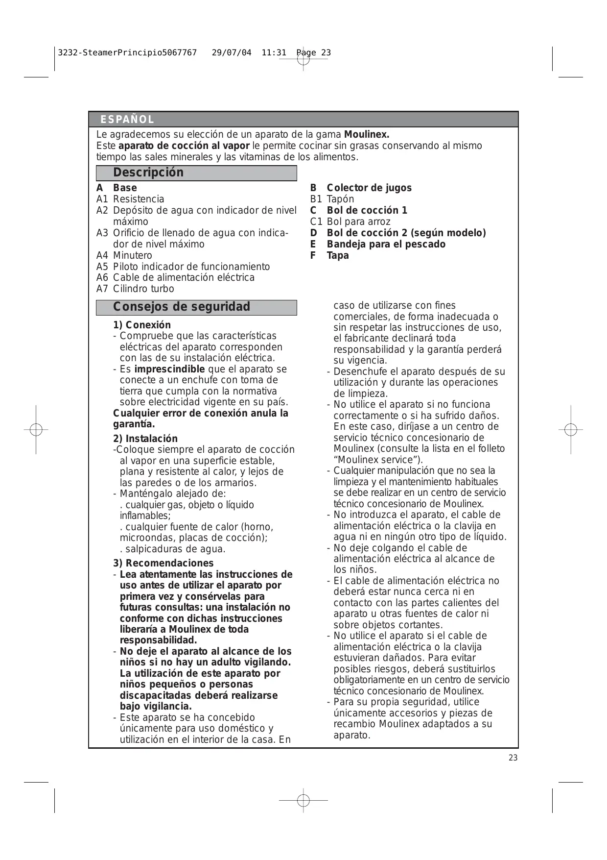 Encuentra gratis el manual del aparato AMA 141 MOULINEX en formato PDF.