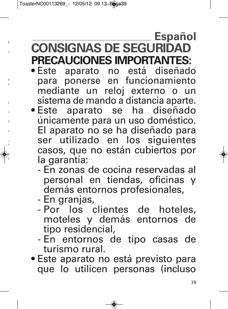 - No utilizar nunca el tostador como fuente de calor o de secado.