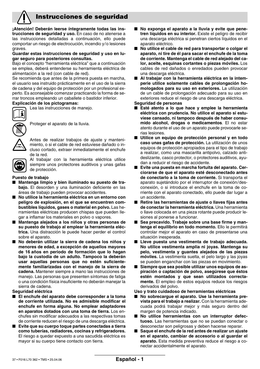 Este manual incluye instrucciones sobre el montaje correcto y el uso seguro de la sierra de cadena. Por ello, es especialmente importante que lea detenidamente estas instrucciones.