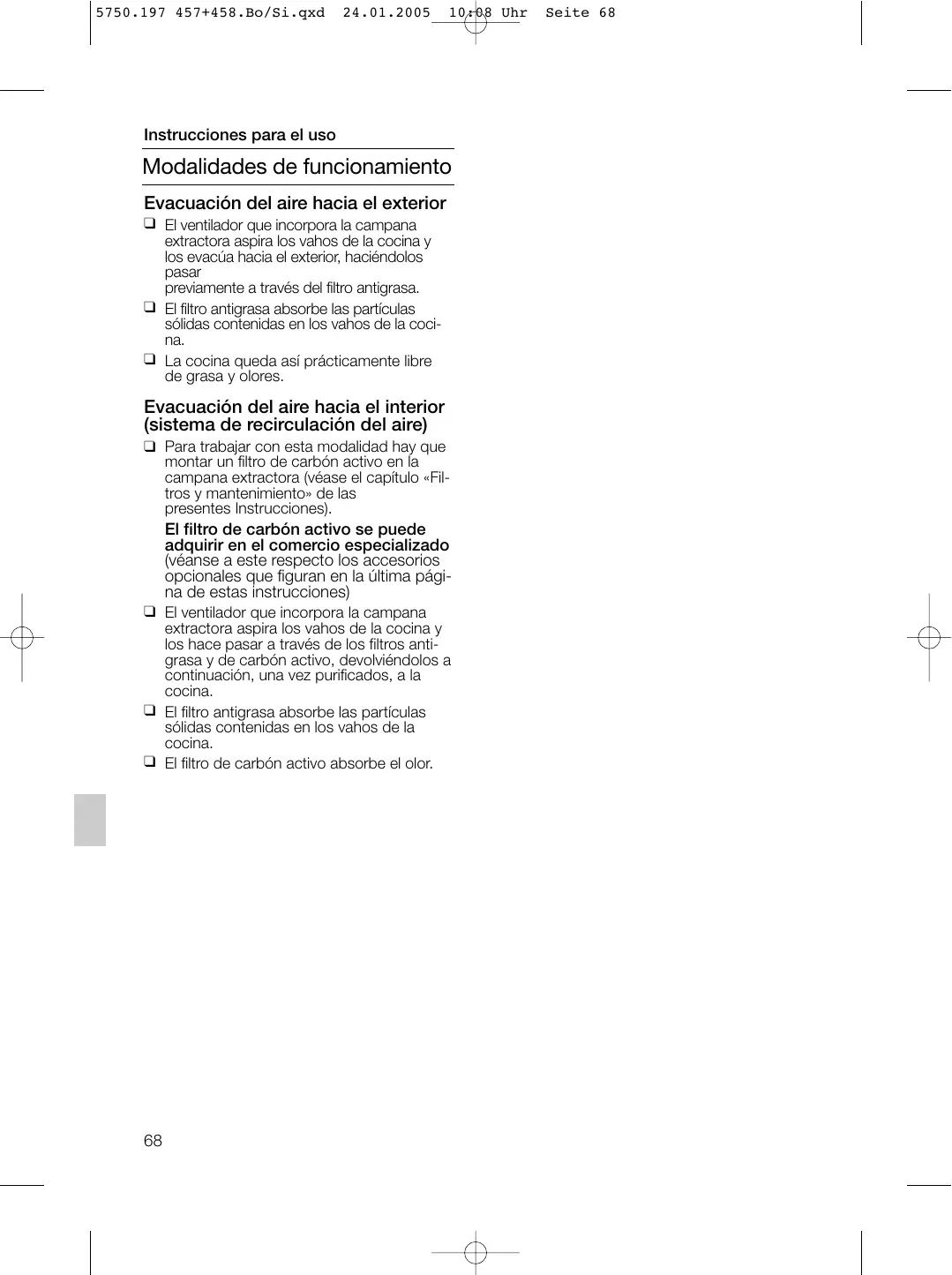❑ Véase el apartado relativo al filtro antigrasa. 5750.197 457+458.Bo/Si.qxd
