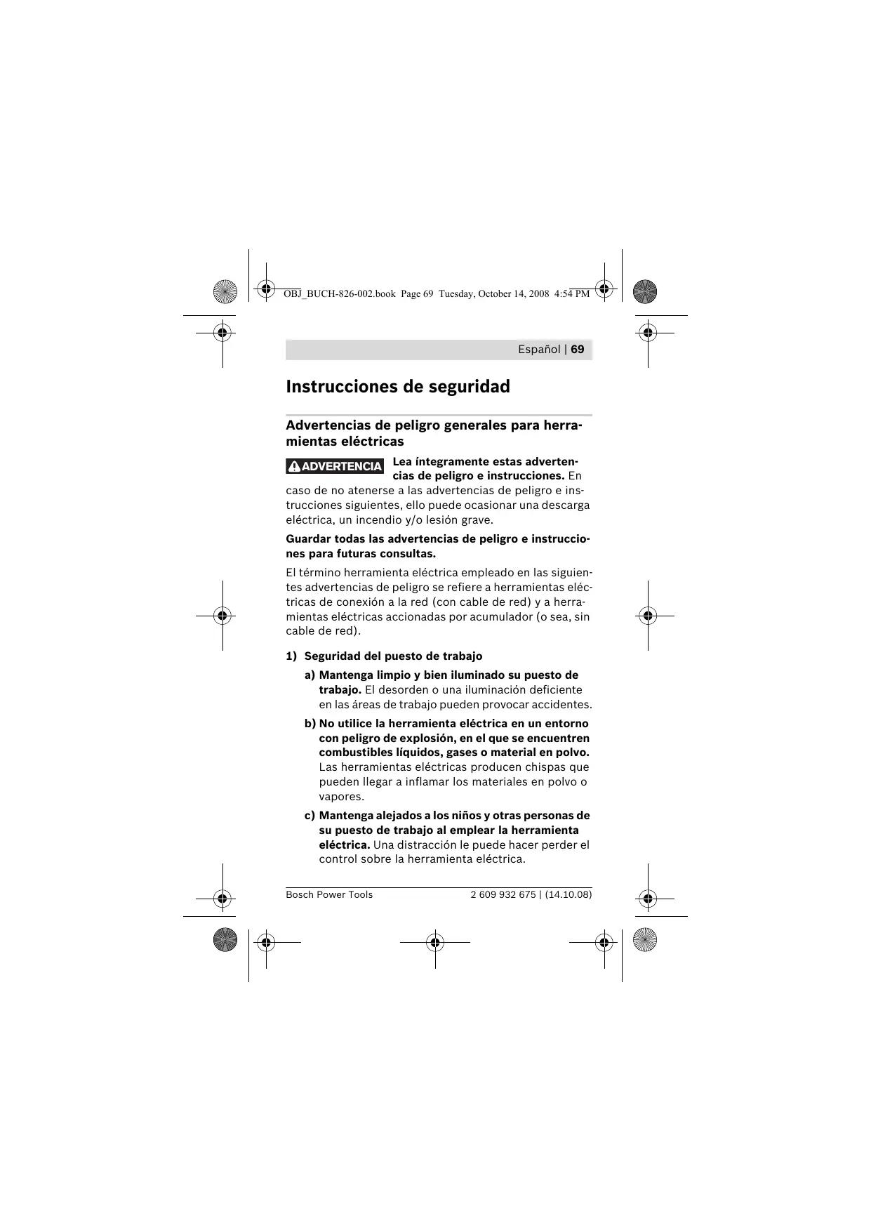 g) Utilice la herramienta electrica, accesorios, utiles, etc. de acuerdo a estas instrucciones, considerando en ello las conditiones de trabajo y la tarea a realizar. El uso de herramentas electricas para problemas differentes de aquellos para los que han sido concebidas pueda resultar peligioso.