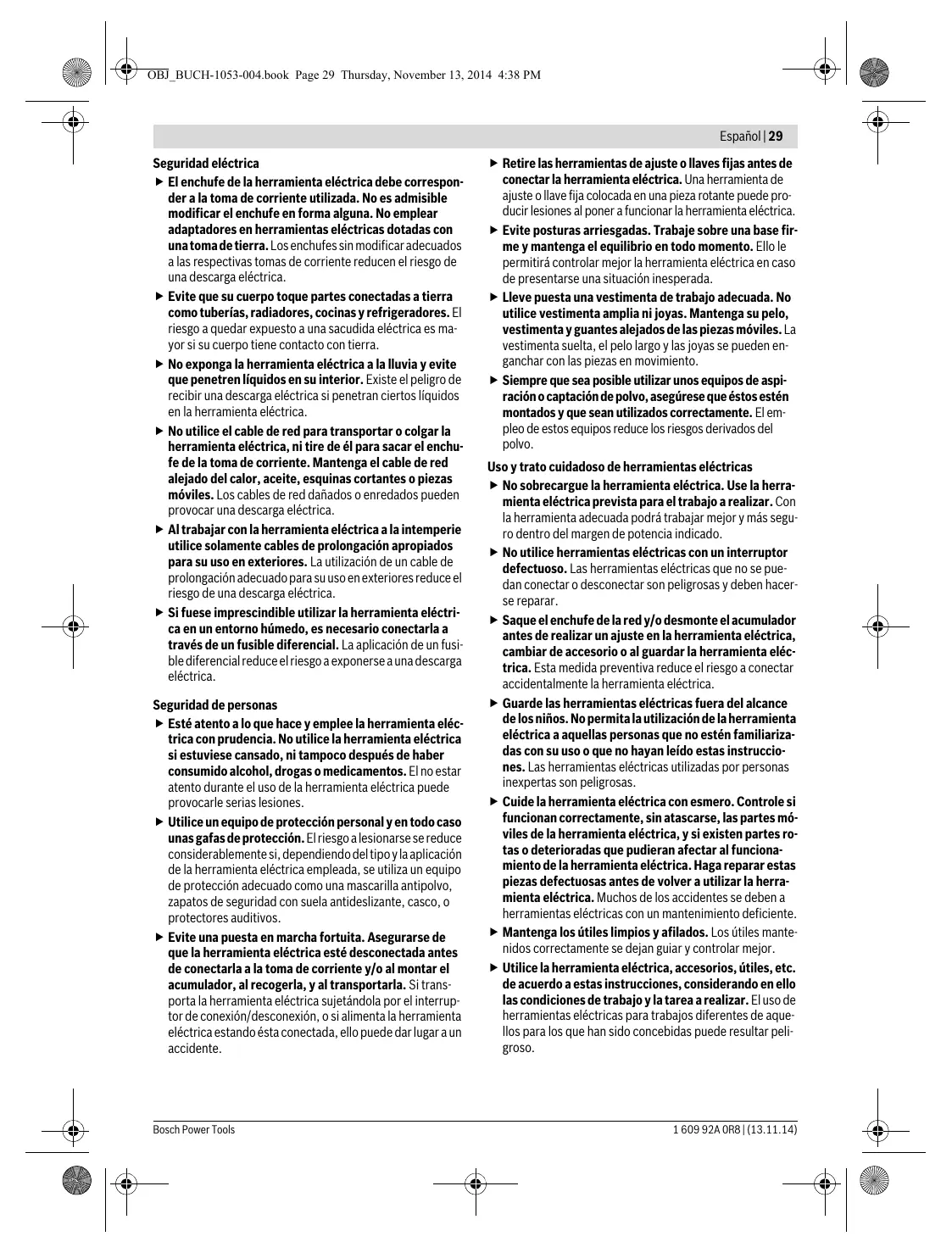 2009/125/CE (Reglamento 1194/2012), 2011/65/UE, 2014/30/UE y 2006/42/CE inclusive sus modificaciones y está en conformidad con las siguientes normas: EN 60745-1, EN 60745-2-11. Expediente técnico (2006/42/CE) en: Robert Bosch GmbH, PT/ETM9, 70764 Leinfelden-Echterdingen, GERMANY