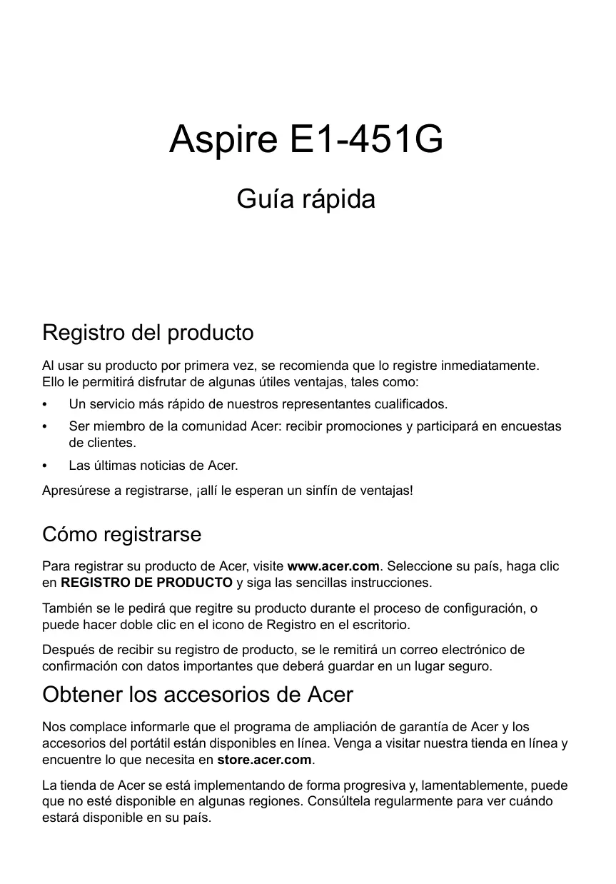 Encuentra gratis el manual del aparato ASPIRE E1-451G ACER en formato PDF.