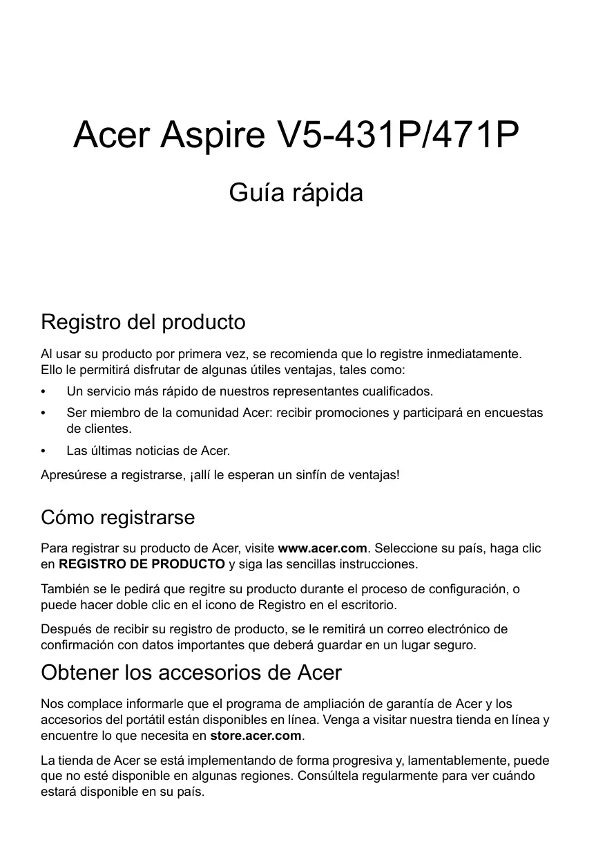 Encuentra gratis el manual del aparato ASPIRE V5-431P ACER en formato PDF.