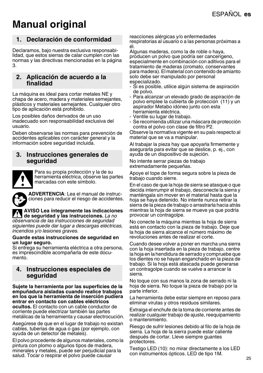 - Para alcantar un elevado grado de aspiración de polvo emplee la cubierta de protección (11) y un aspirador Metabo idoneo+junto con esta herramipta electrica.