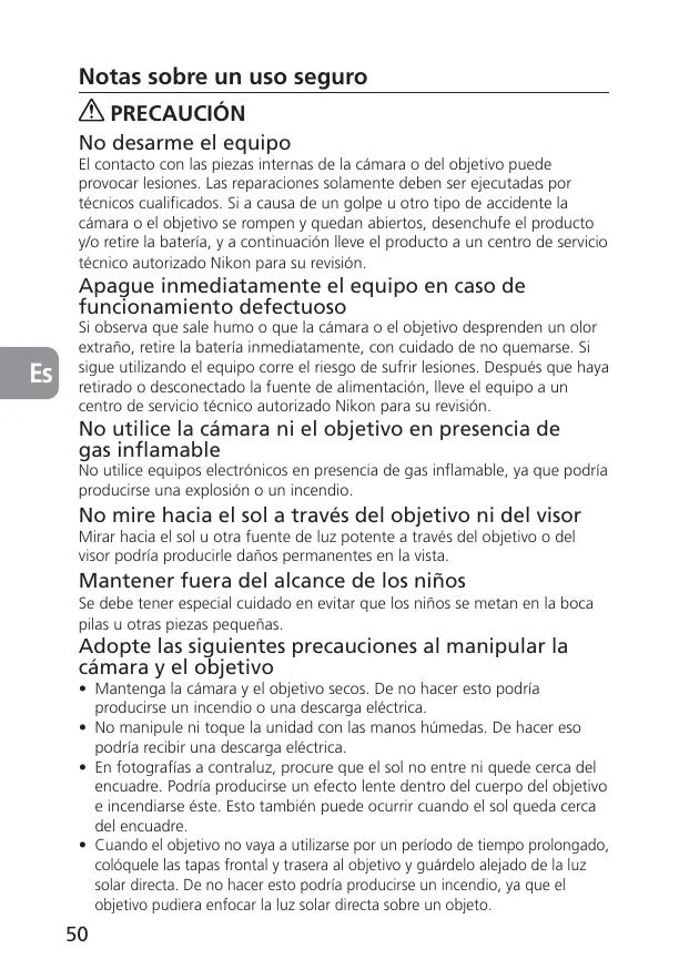 | Piezas de repuesto y reparabilidad | Disponibilidad variable, consultar un centro de servicio autorizado Nikon |