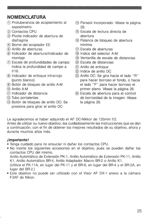 Le agradecemos el haber adquirido el AF DC-Nikkor de 135mm f/2.