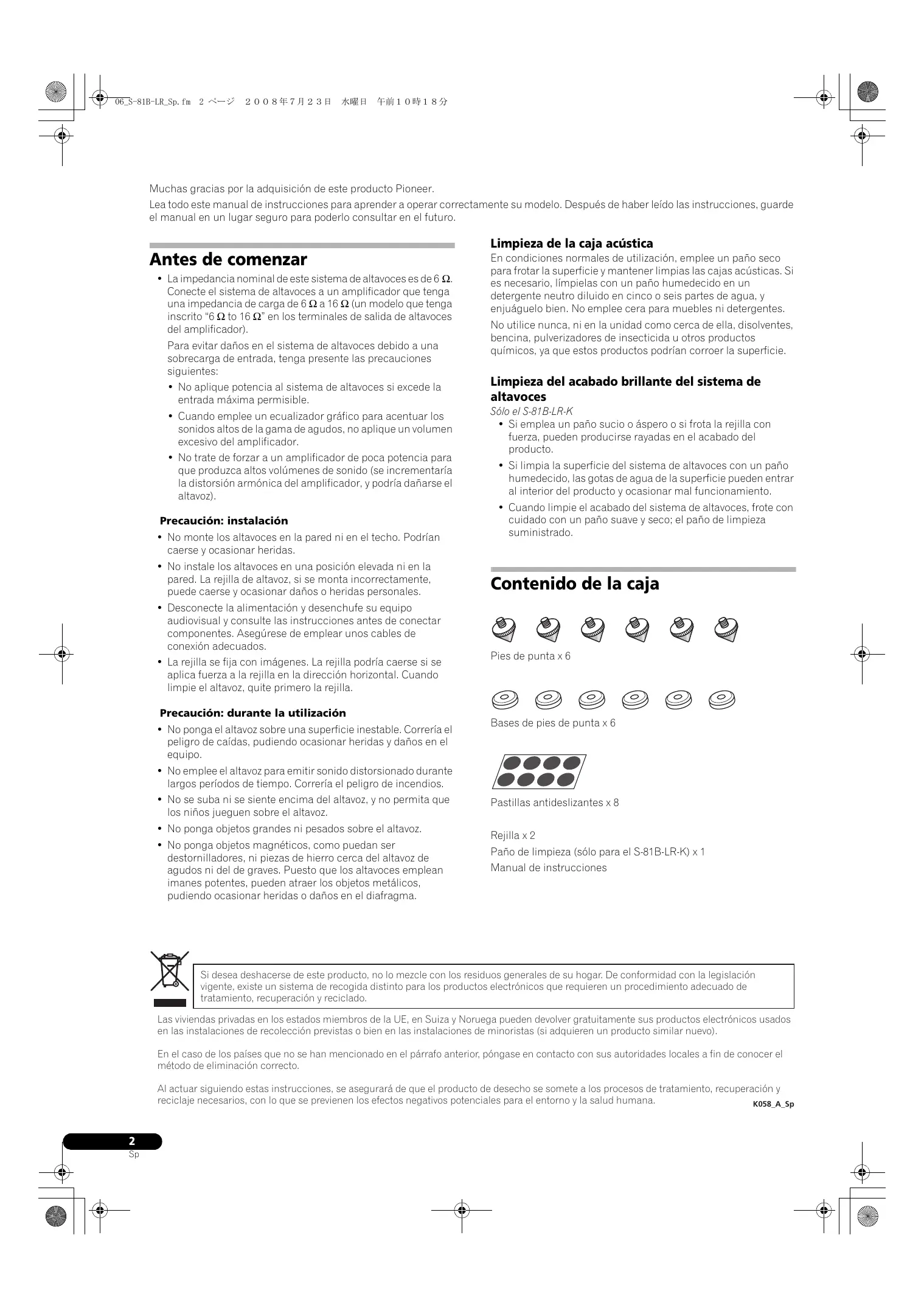 S-81B-LR-K - PIONEER - Manual de uso y guía de instrucciones gratis