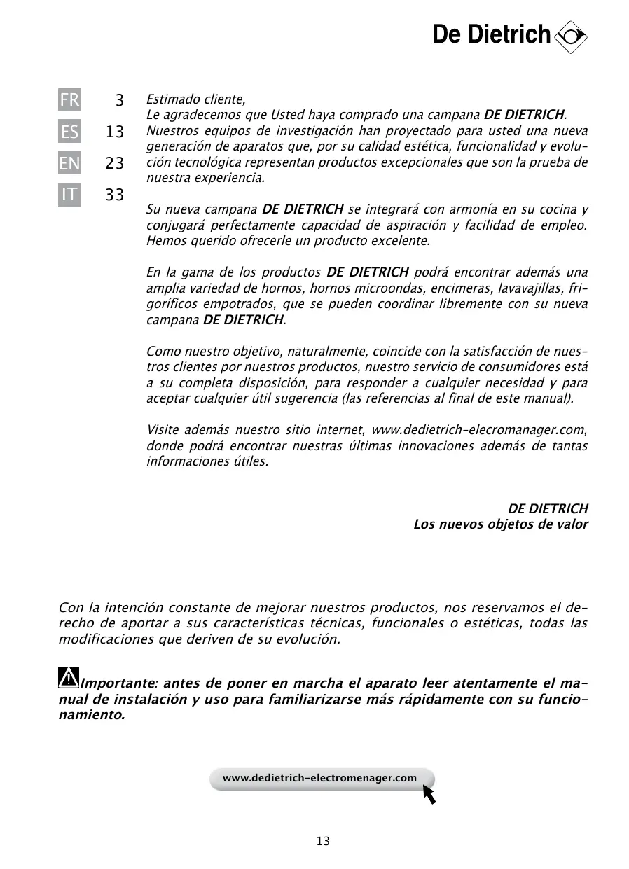 Visite además nuestro situ internet, www.dedietrich-electromanager.com, donde podrá encontrar nuestrosULTIMAS innovaciones además de tanas informaciones útiles.