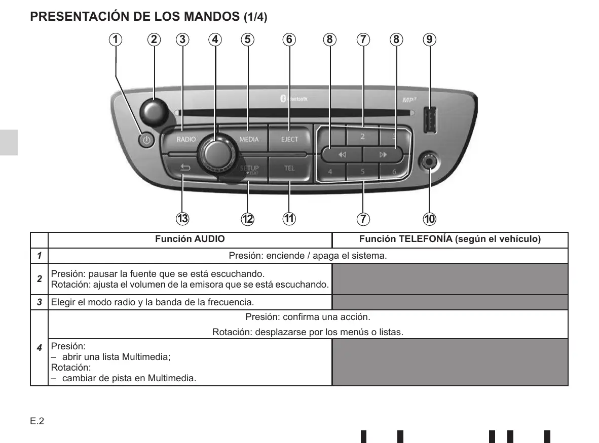 Presentaciôn de los mandos E.2