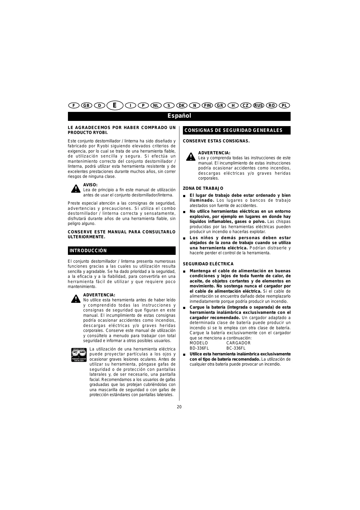 BD-336FL - RYOBI - Manual de uso y guía de instrucciones gratis