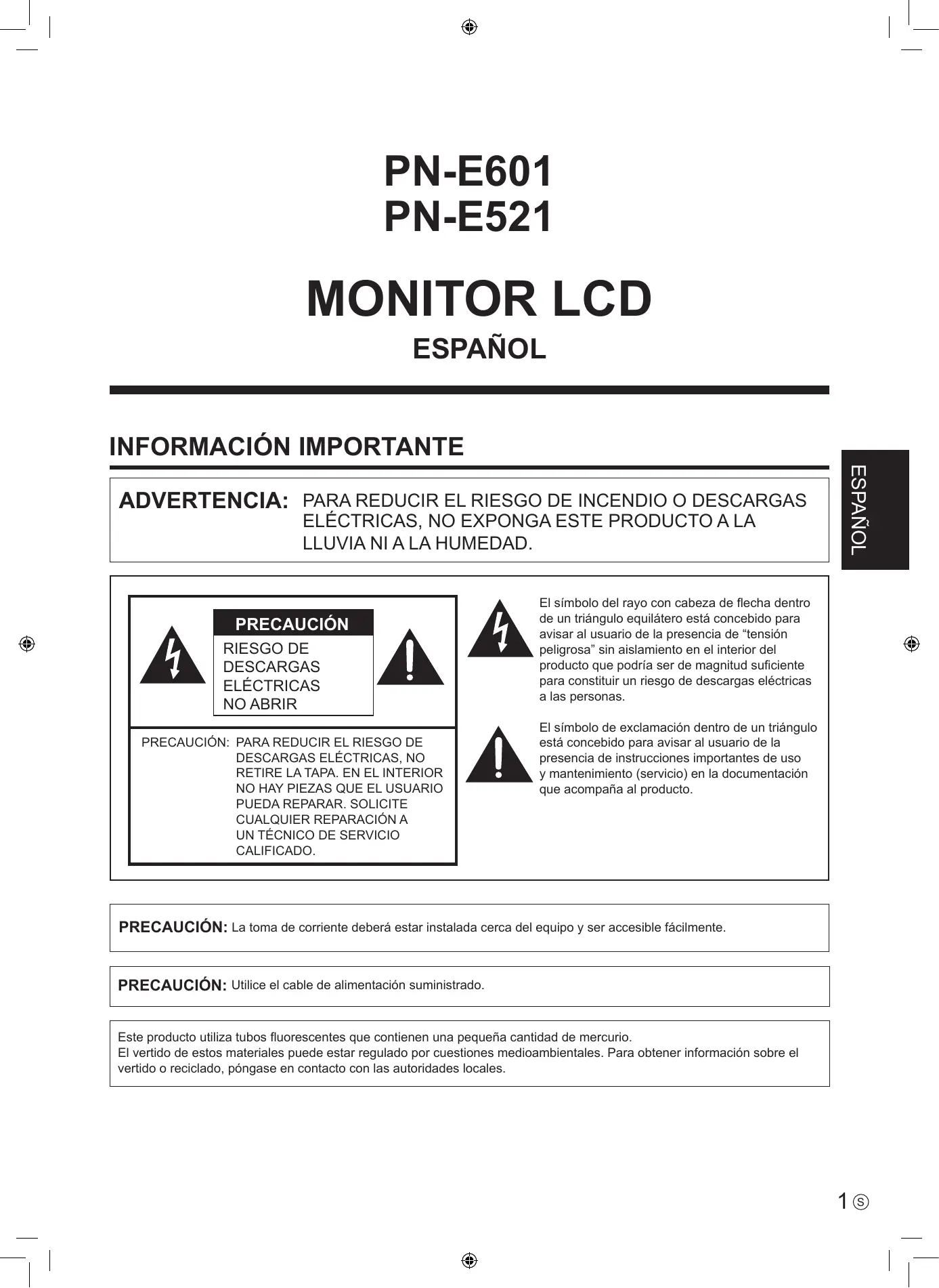 Encuentra gratis el manual del aparato PN-E601 SHARP en formato PDF.