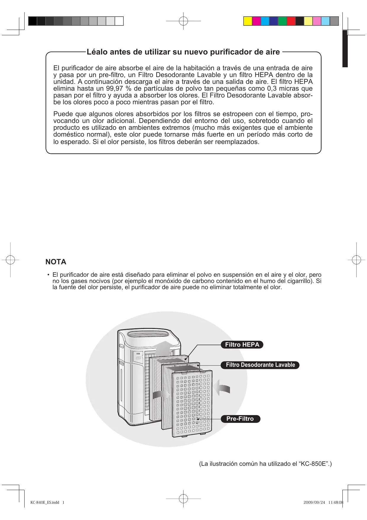 SPIA DEL FILTRO Léalo antes de utilizar su nuevo purificador de aire