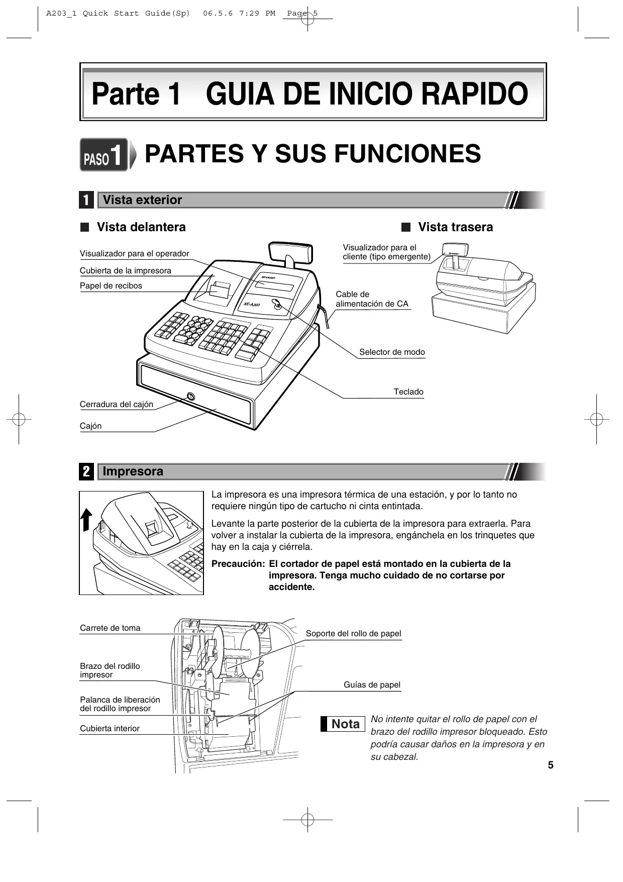 Sírvase leer este manual detenidamente antes de hacer funcionar la caja registradora para familiarizarse y comprender por completo sus funciones y características. Guarde este manual para futura referencia dado que le servirá de ayuda en caso de tener algún problema de funcionamiento con la caja registradora.