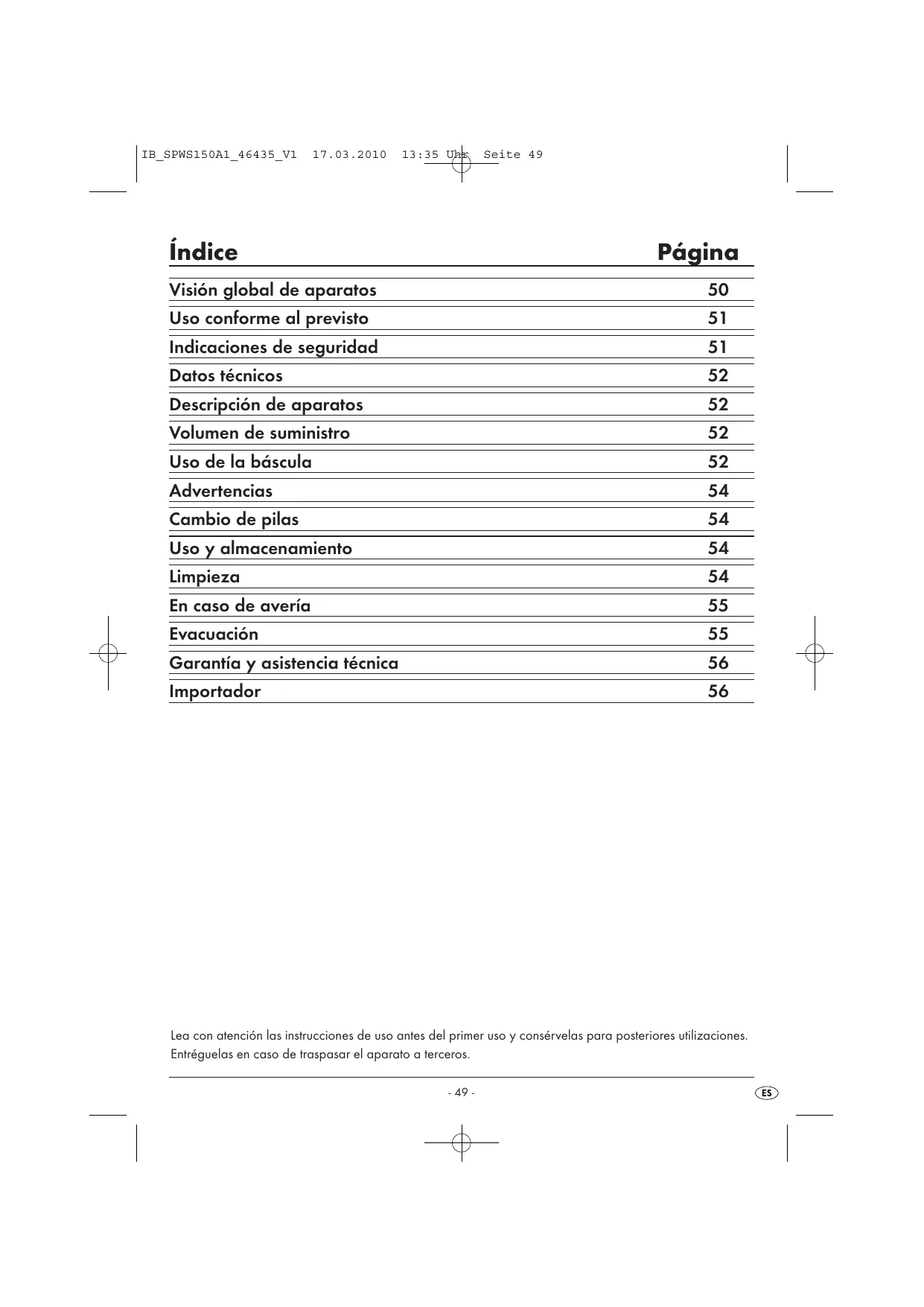 Entréguelas en caso de traspasar el aparato a terceros. - 49 -