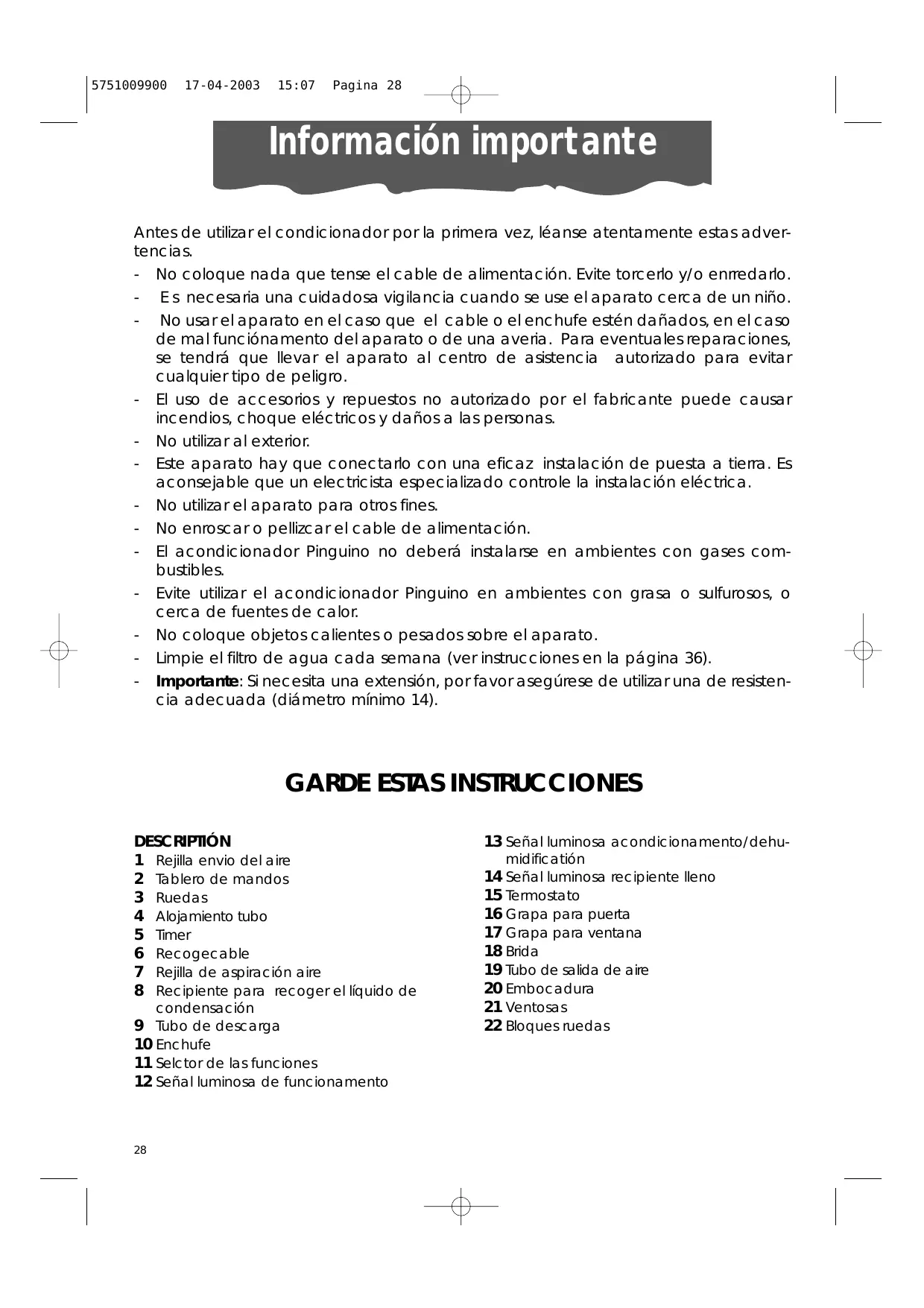 Le pedimos que dedique un poco de su tiempo a la lecture de estemanual de instrucciones y de guardarlo con cuidado. De this mode, Podrausar Pinguino en conditiones de maxima eficacia y serenidad.