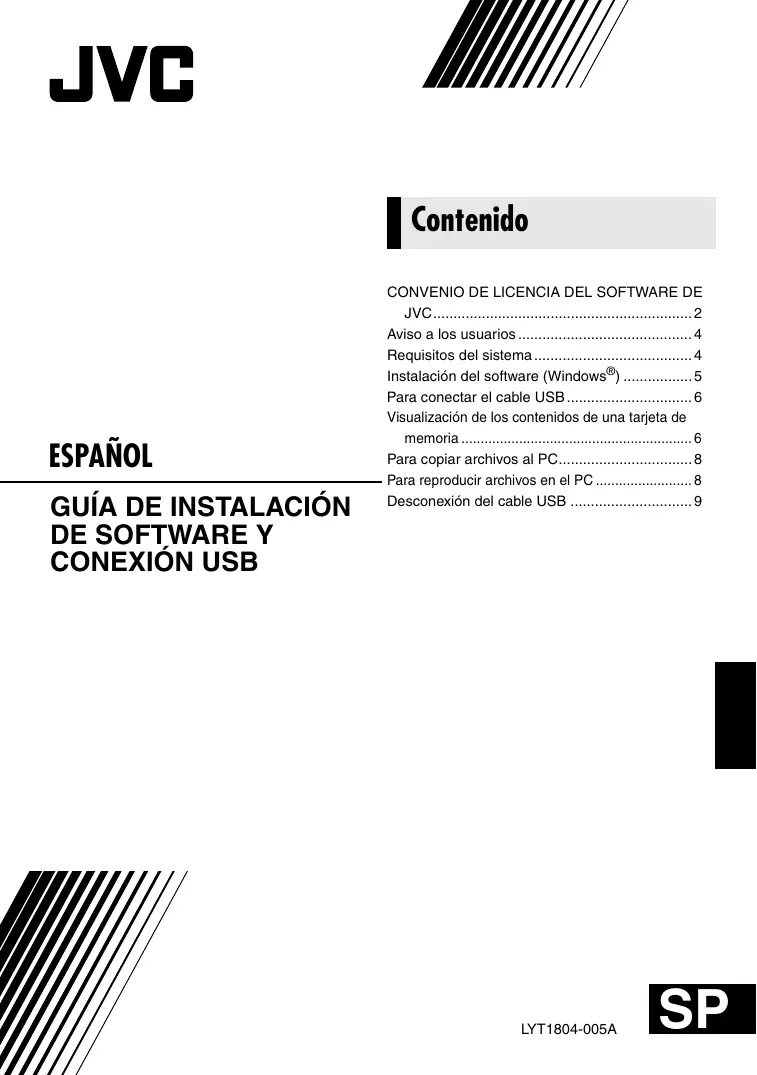 JVC... ue Aviso a los usuarios . Requisitos del sistema... : Instalaciôn del software (Windows®) Para conectar el cable USB... Visualizaciôn de los contenidos de una tarjeta de memoria . ne Para copiar archivos al PC. Para reproducir archivos en el PC … Desconexién del cable USB .