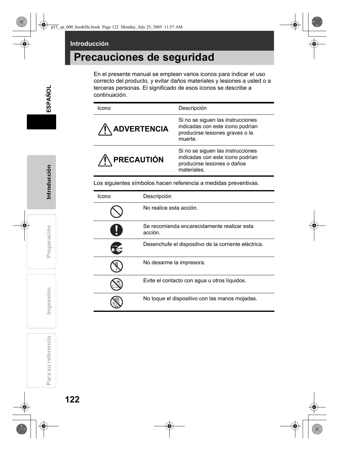 Precauciones de seguidad 122