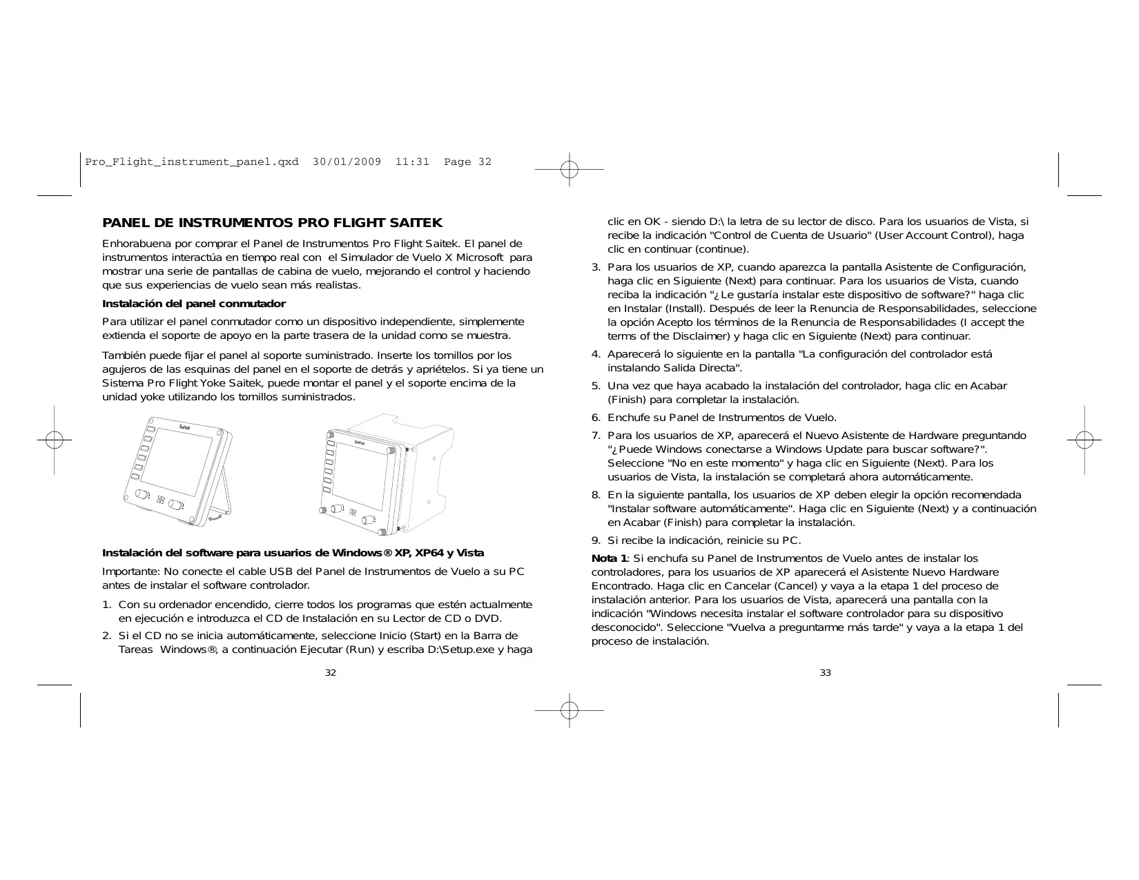 MANUAL DE USUARIO PRO FLIGHT INSTRUMENT PANEL SAITEK