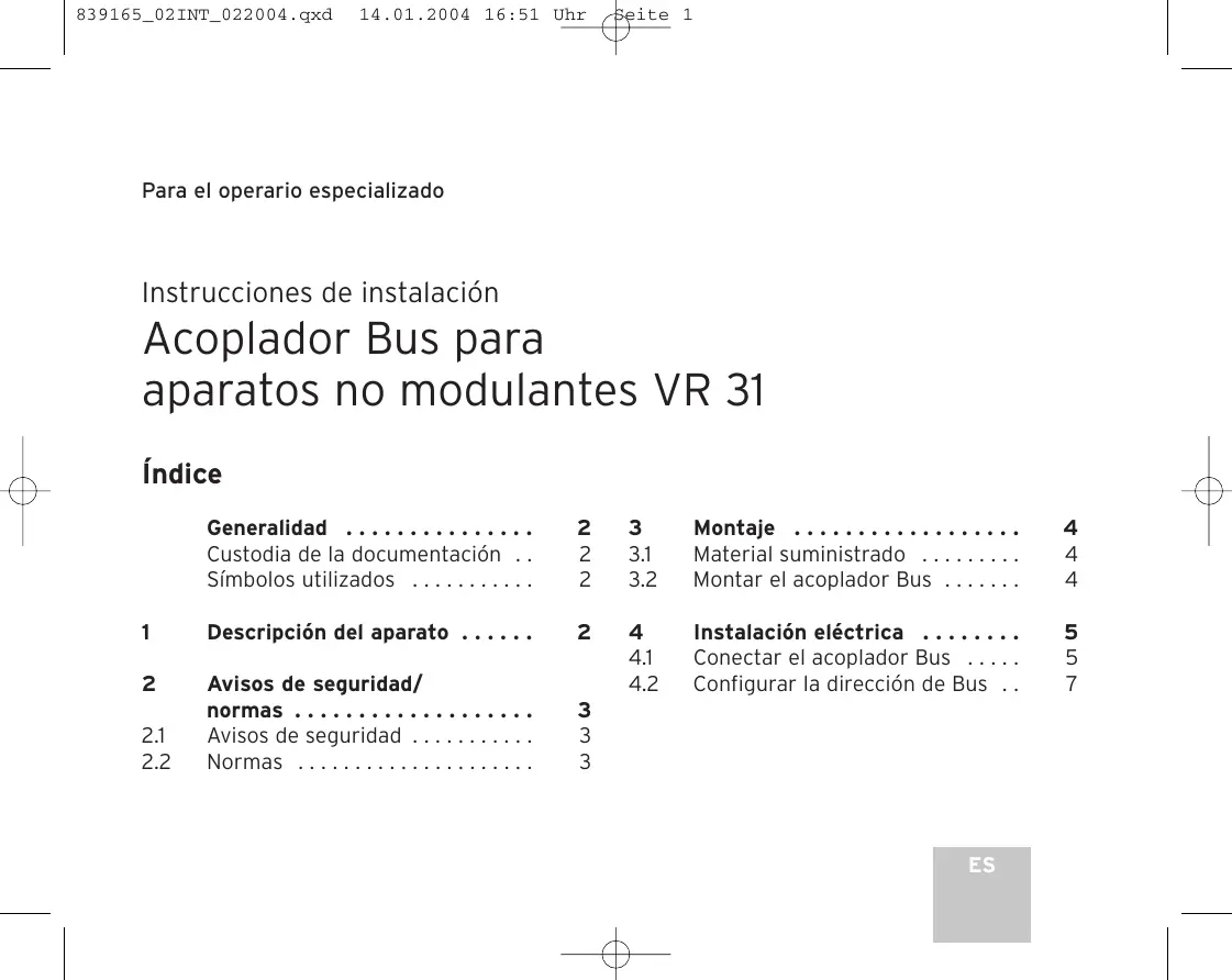 Instrucciones de instalación - Acoplador Bus para aparatos no modulantes VR 31