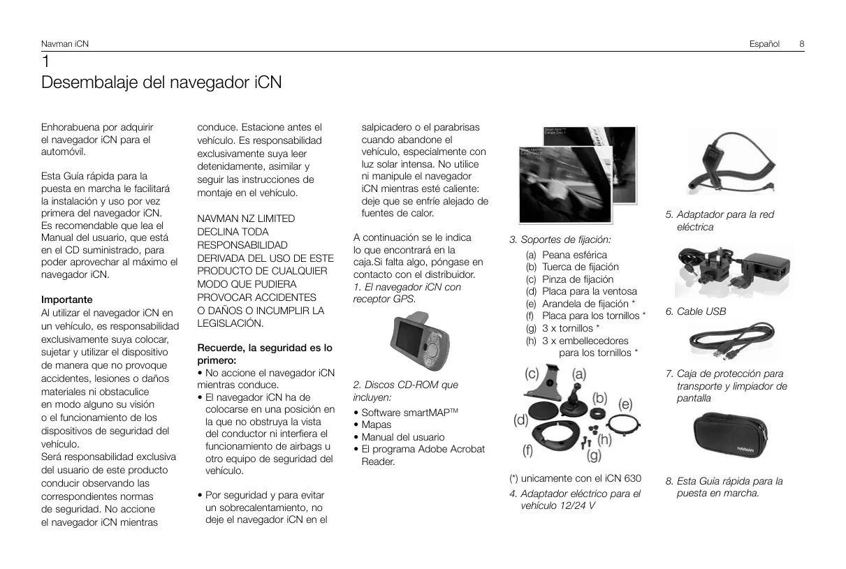incluyen: Software smartMAPTM Mapas Manual del usuario El programa Adobe Acrobat Reader. (*) unicamente con el iCN 630