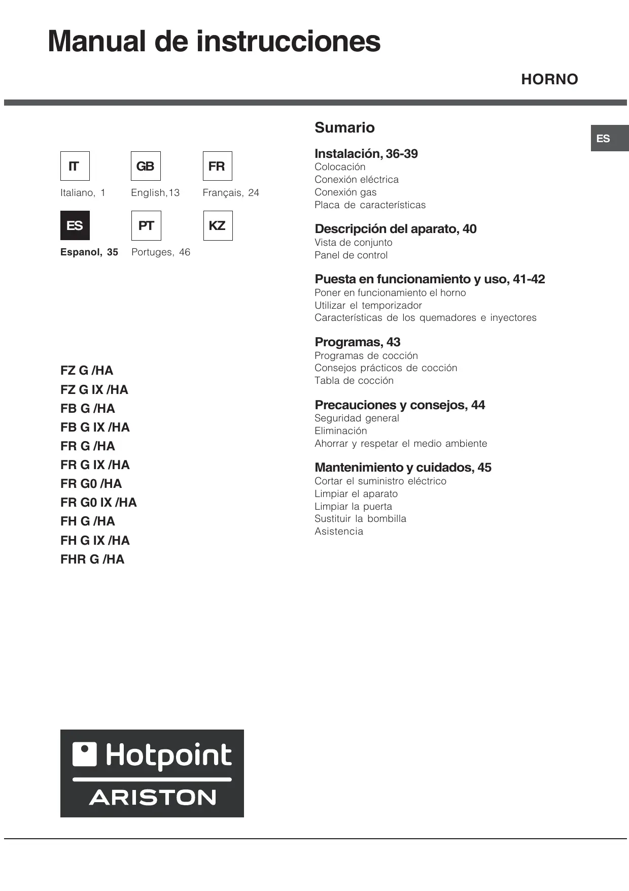 FH G IX/HA - Horno empotrado HOTPOINT - Manual de uso y guía de instrucciones gratis