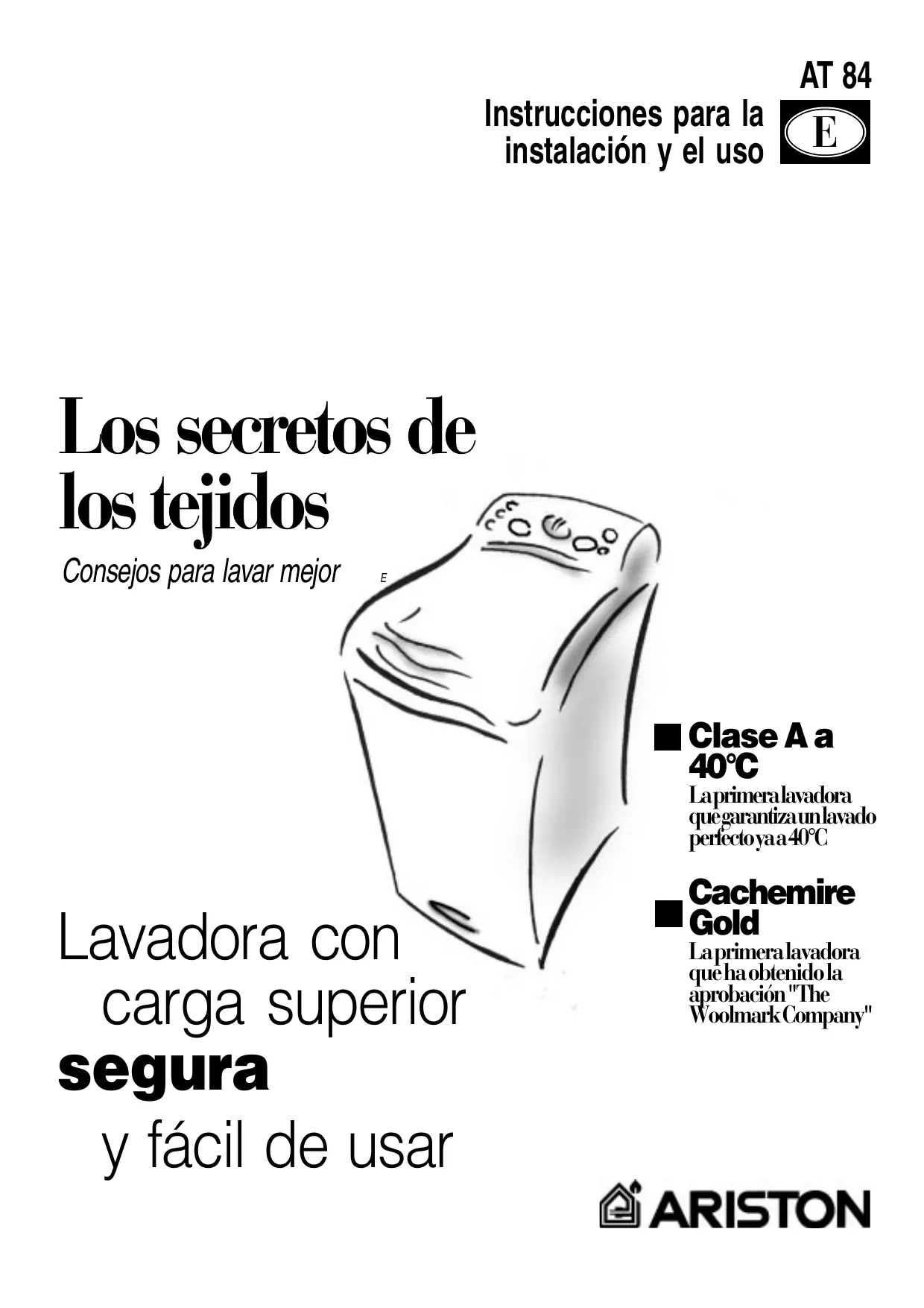 Clase A a 40°C Lavadora con carga superior segura y fácil de usar Cachemire Gold La primera lavadora que ha obtenido la aprobación"The WoolmarkCompany" Guía rápida Descubra aquí los 12 temas que se explican en las páginas de este manual. Lea, aprenda y diviértase: descubrirá tantos pequeños secretos para lavar mejor, con menor esfuerzo y haciendo durar más la lavadora. Y sobre todo con mayor seguridad.