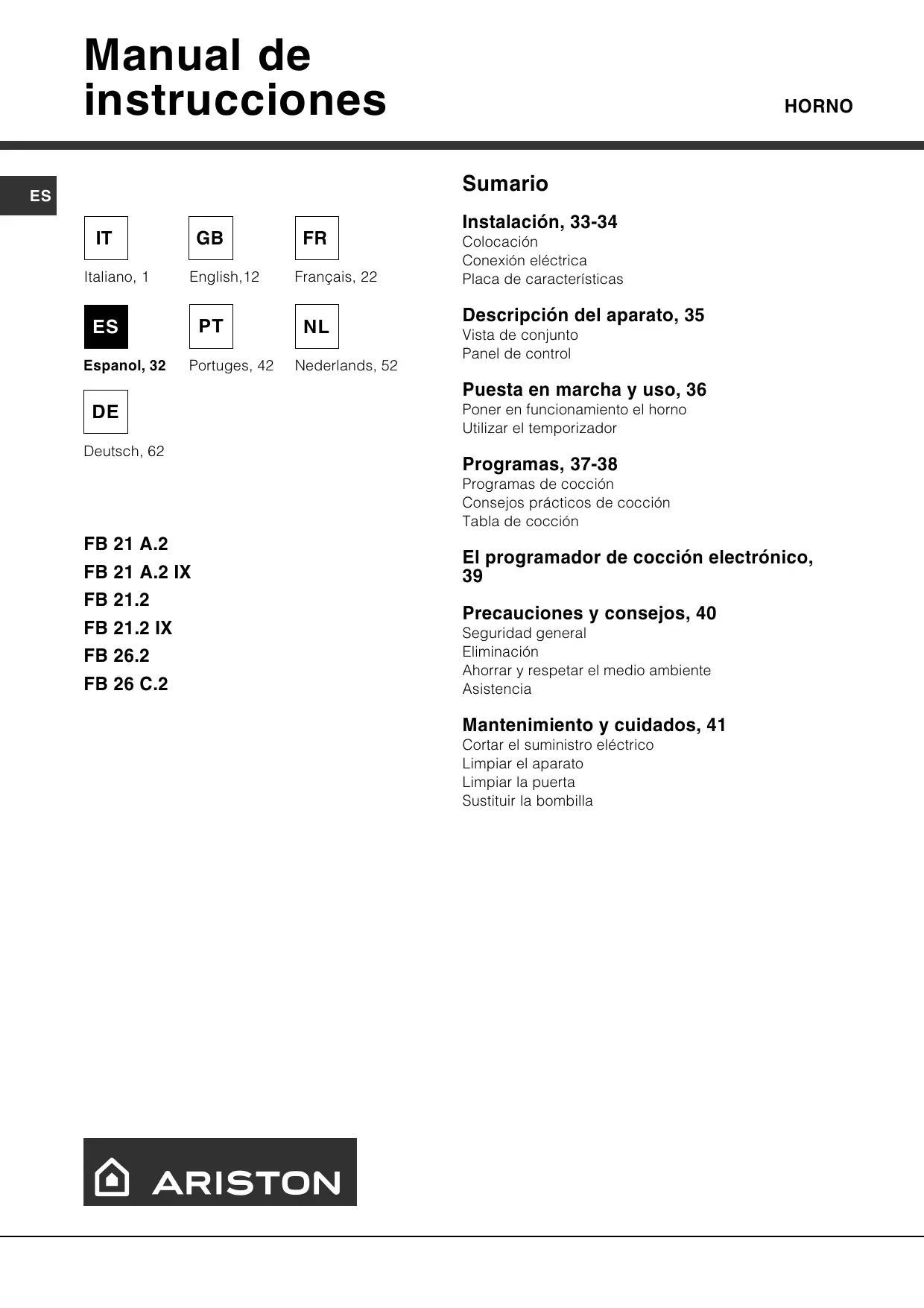 FB 26.2 - Horno HOTPOINT - Manual de uso y guía de instrucciones gratis