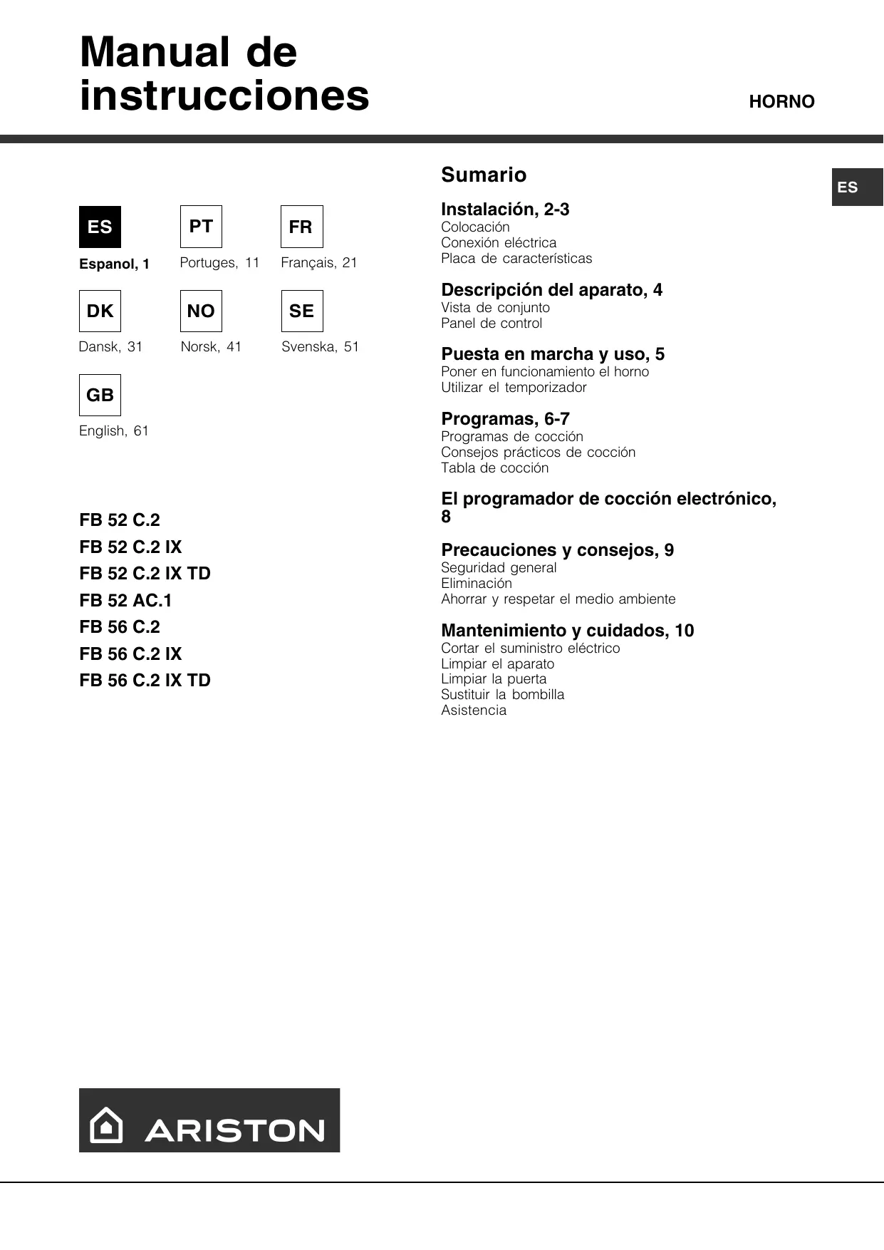 MANUAL DE USUARIO FB 56 C.2 IX TD HOTPOINT