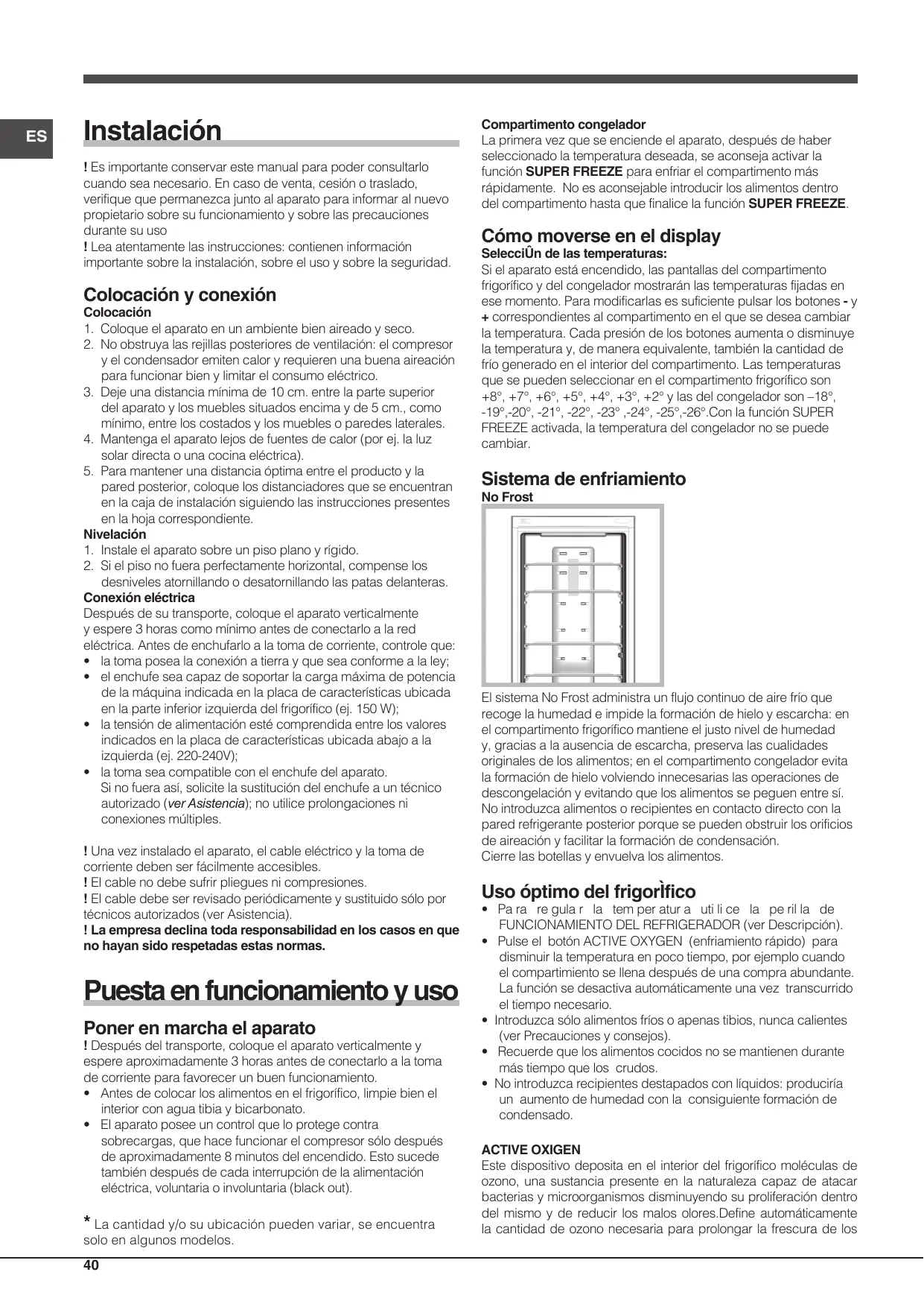 - El aparato debe ser utilisé para conservar y congelar alimentos solo por personas adultas y según lasindicaciones contentidas en este manual.