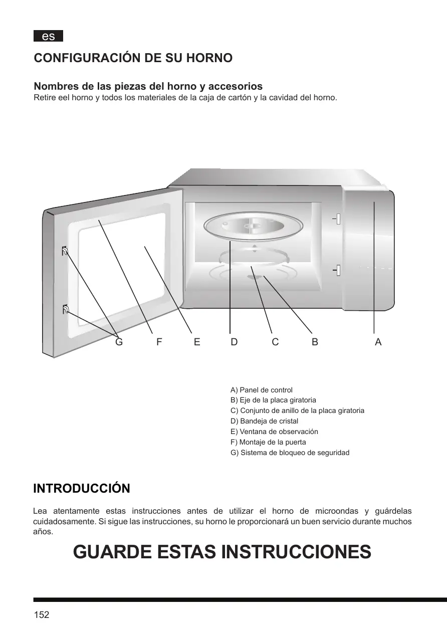 INTRODUCCIÓN Lea atentamente estas instrucciones antes de utilizar el horno de microondas y guárdelas cuidadosamente. Si sigue las instrucciones, su horno le proporcionará un buen servicio durante muchos años.