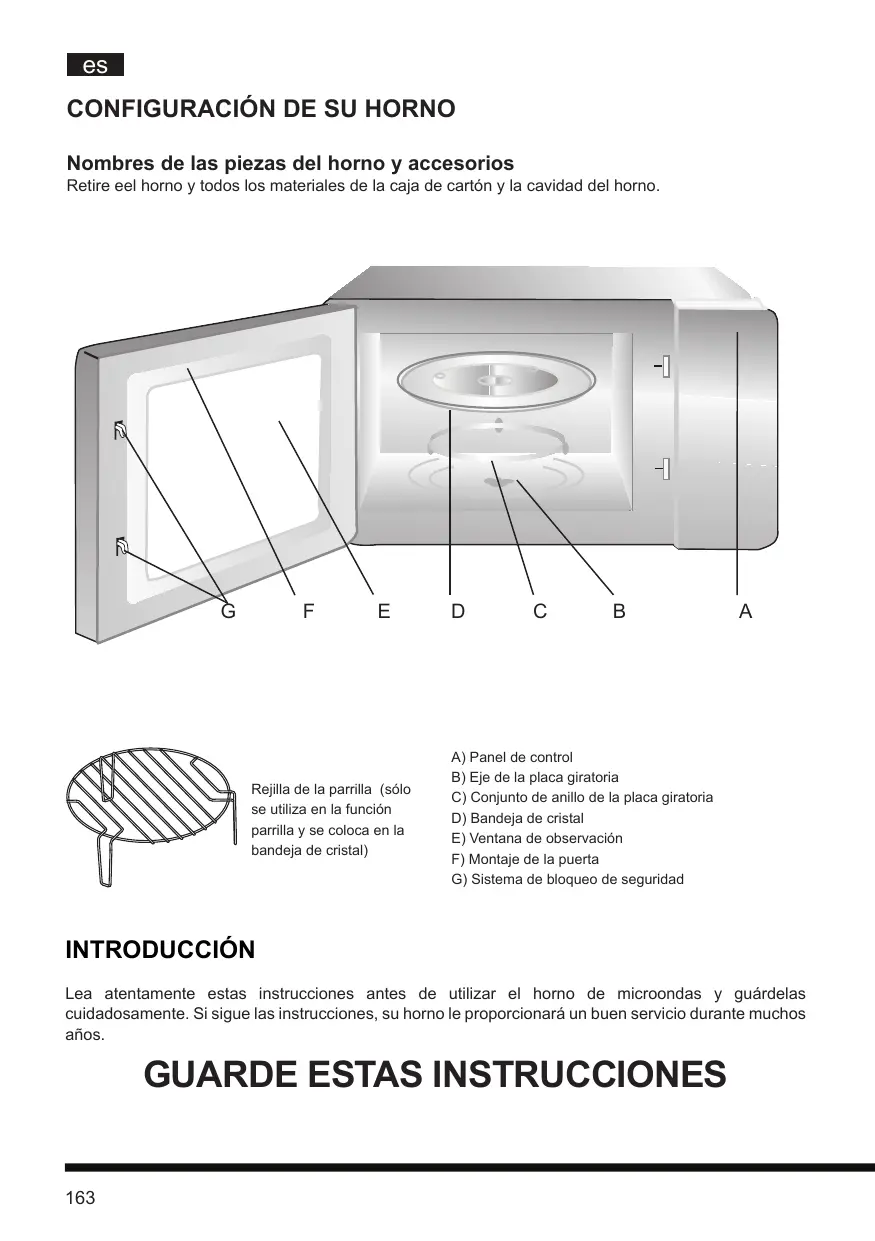 es CONFIGURACIÓN DE SU HORNO Nombres de las piezas del horno y accesorios