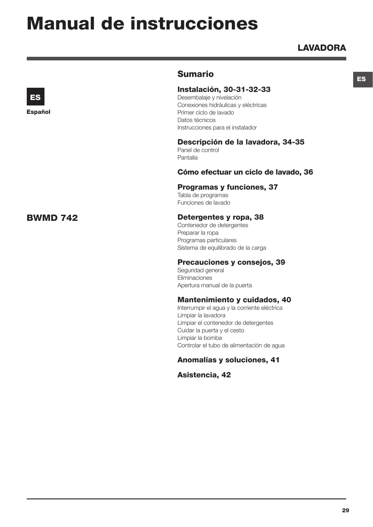 MANUAL DE USUARIO BWMD 742 HOTPOINT