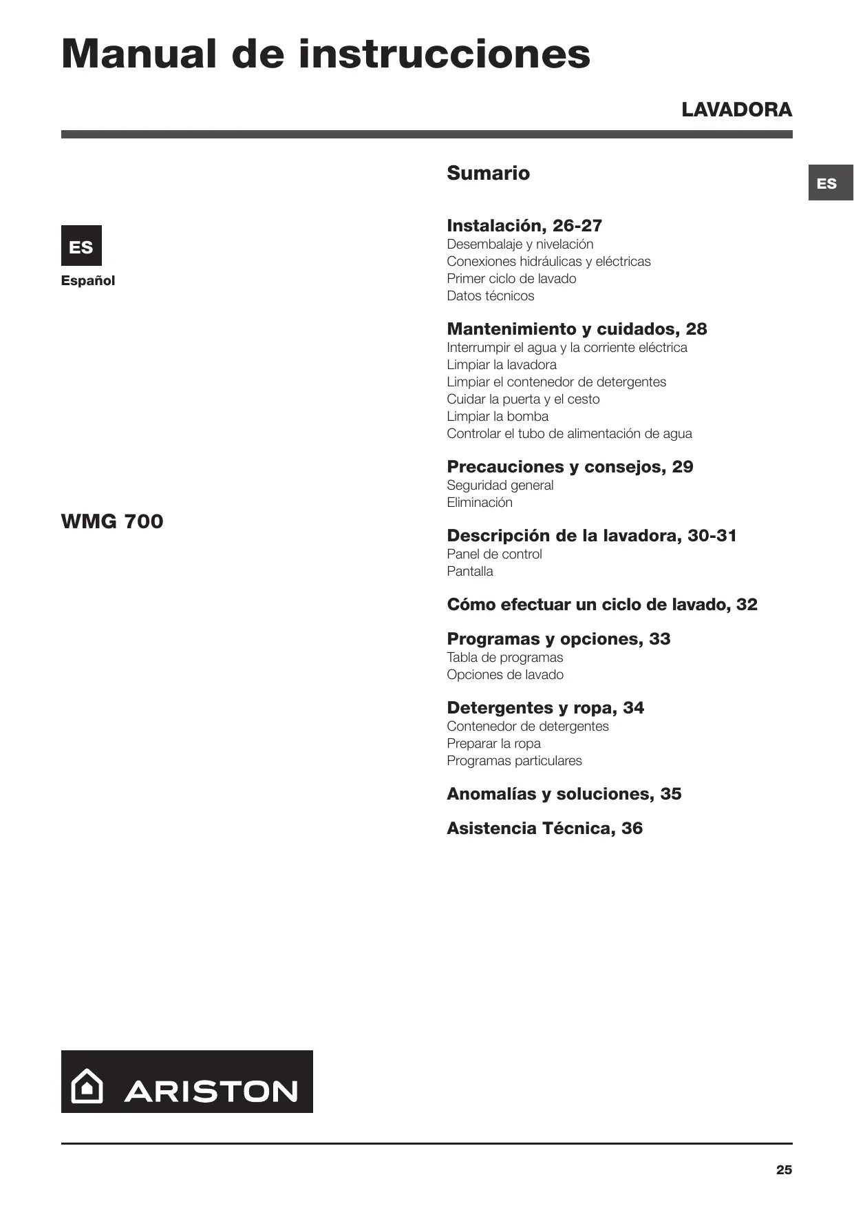 WMG 700 EX.M - Lavadora HOTPOINT - Manual de uso y guía de instrucciones gratis
