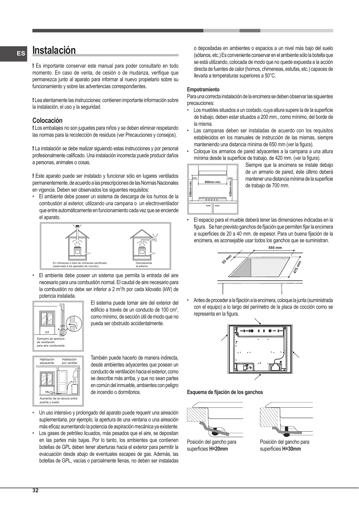 ! Es posible instalar la encimera sólo sobre hornos empotrados dotados de ventilación.