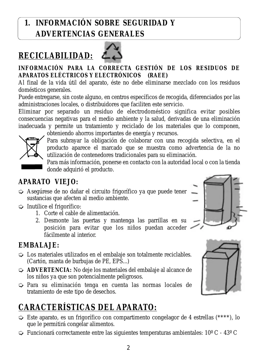 1. INFORMACIÓN SOBRE SEGURIDAD Y ADVERTENCIAS GENERALES RECICLABILIDAD: