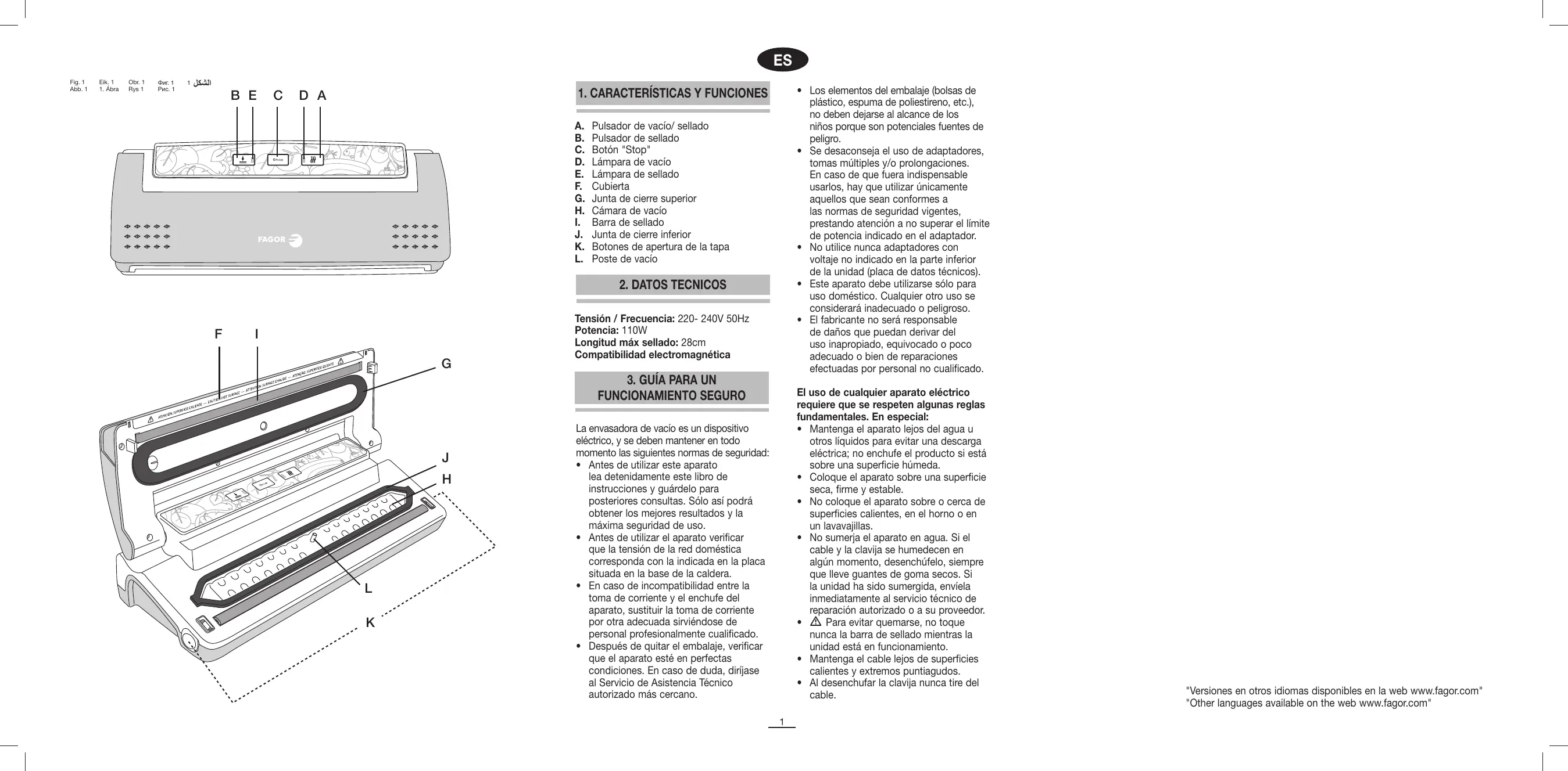 "Versiones en otros idiomas disponibles en la web www.fagor.com" "Other languages available on the web www.fagor.com"
