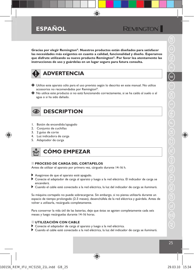 HC5810 - Cortapelos REMINGTON - Manual de uso y guía de instrucciones gratis