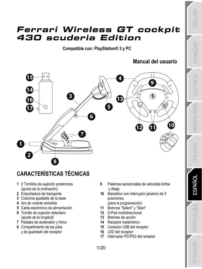 MANUAL DE USUARIO FERRARI WIRELESS F430 COCKPIT THRUSTMASTER