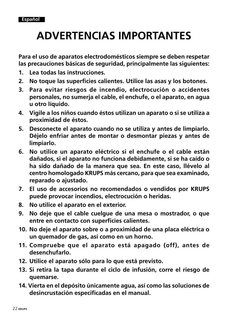 Encuentra gratis el manual del aparato 229 KRUPS en formato PDF.