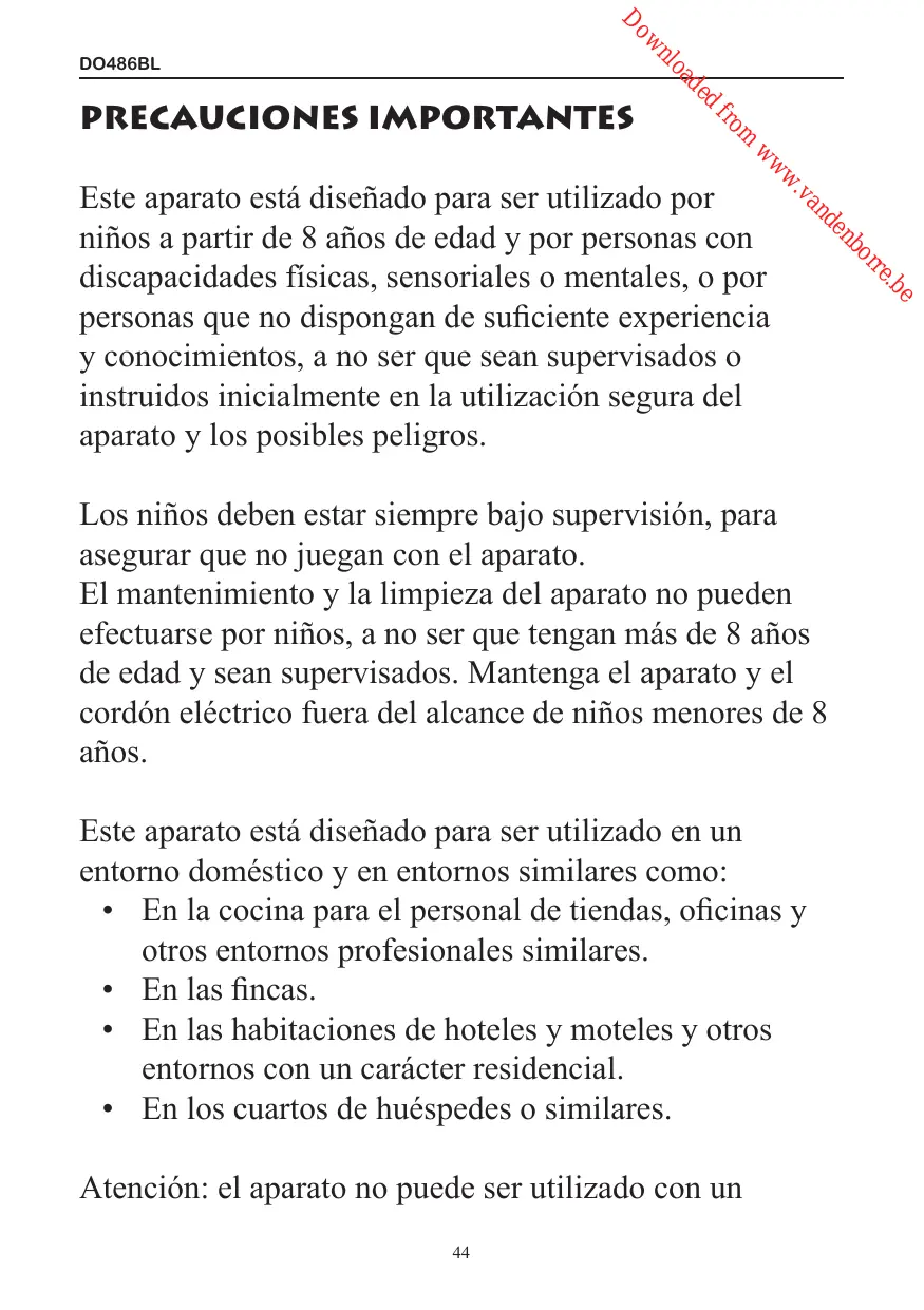 Este aparato está Diseñado para ser utilisé por niños a partir de 8 años de edad y por personas con discapacidades fisicas, sensoriales o mentales, o por personas que no disponan de suficiente experiencia y conocimientos, a no ser que Sean supervisados o instruidos inicialmente en la Utilización segura del aparato y los posiblespeligros.