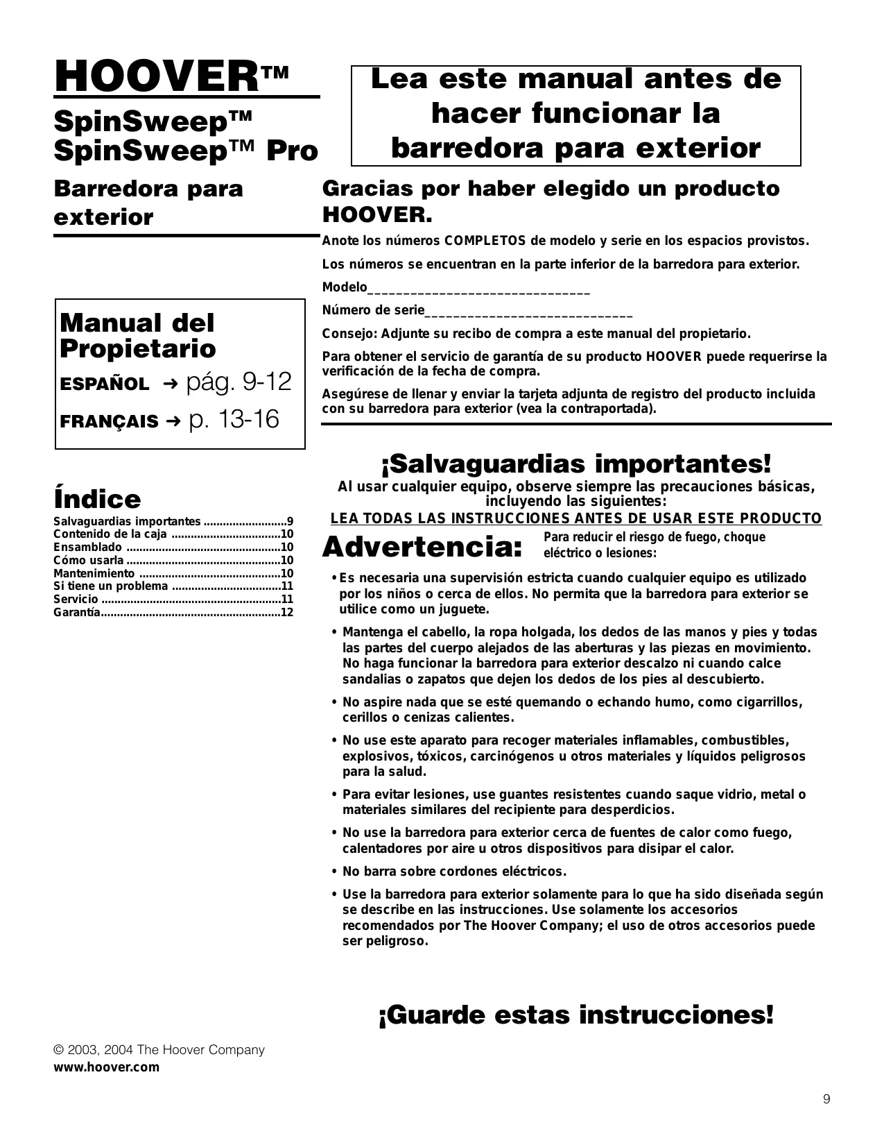 MANUAL DE USUARIO SPINSWEEP PRO HOOVER