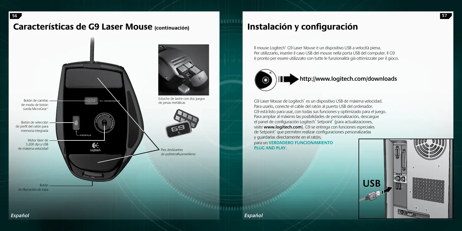 Descarga las instrucciones para tu Ratón para juegos en formato PDF gratis! Encuentra tus instrucciones G9 LASER MOUSE - LOGITECH y toma tu dispositivo electrónico nuevamente en la mano. En esta página están publicados todos los documentos necesarios para el uso de su dispositivo. G9 LASER MOUSE de la marca LOGITECH.